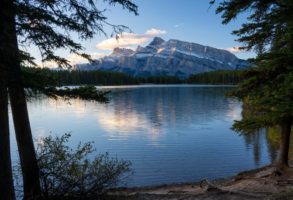 Two Jack Lake is one of those locations that never gets old—both visually and linguistically. Located roughly 10 kilometers northeast of Banff, this small lake offers classic sunrise compositions with Mount Rundle rising behind calm water and a gently curving shoreline.