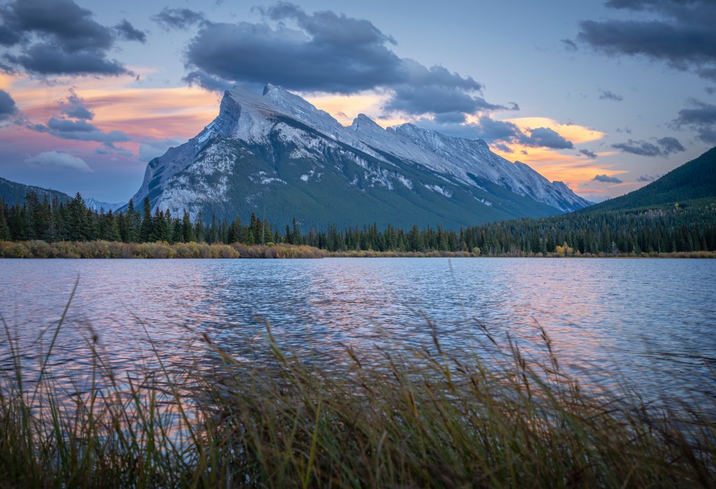 While Vermillion Lakes are often associated with sunrise, sunset can be equally rewarding, particularly in early October when the setting sun illuminates the mountain from the west. Even after sunset, high clouds can catch the remaining light and create fleeting but unforgettable moments—sometimes requiring quick, handheld shooting when conditions change faster than expected.